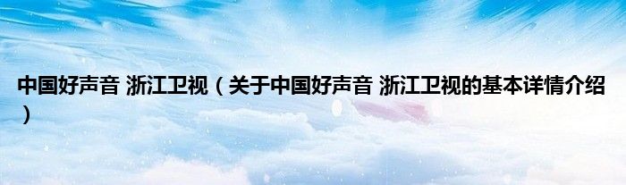 本文关于中国好声音 浙江卫视的基本详情介绍就讲解完毕,希望对大家有所帮助。