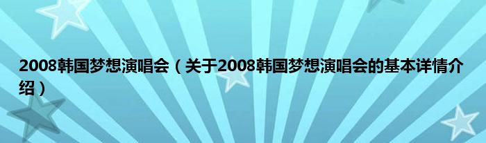 本文关于2008韩国梦想演唱会的基本详情介绍就讲解完毕,希望对大家有所帮助。
