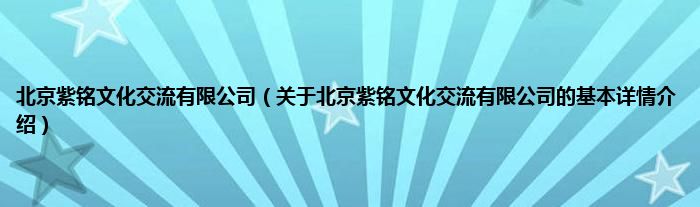 本文关于北京紫铭文化交流有限公司的基本详情介绍就讲解完毕,希望对大家有所帮助。