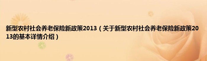 本文关于新型农村社会养老保险新政策2013的基本详情介绍就讲解完毕,希望对大家有所帮助。