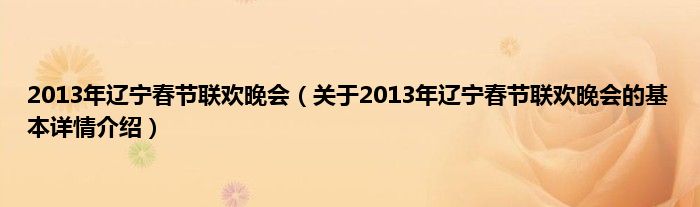 本文关于2013年辽宁春节联欢晚会的基本详情介绍就讲解完毕,希望对大家有所帮助。