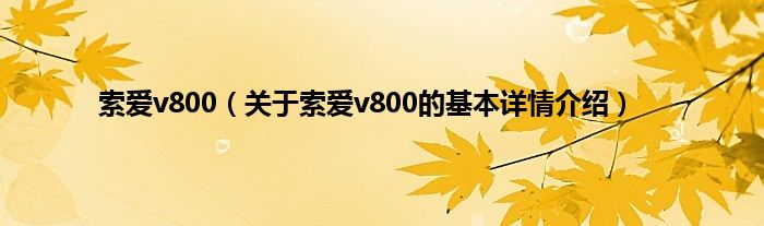 本文关于索爱v800的基本详情介绍就讲解完毕,希望对大家有所帮助。