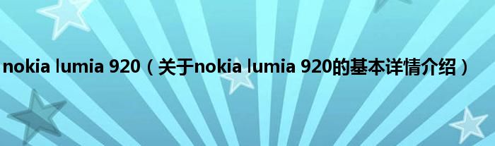 本文关于nokia lumia 920的基本详情介绍就讲解完毕,希望对大家有所帮助。