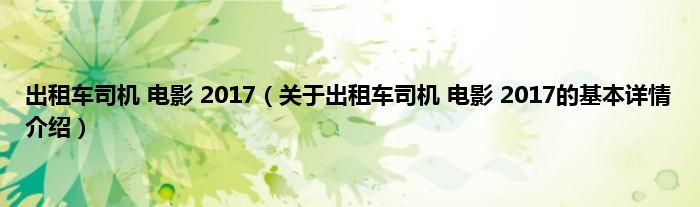 本文关于出租车司机 电影 2017的基本详情介绍就讲解完毕,希望对大家有所帮助。