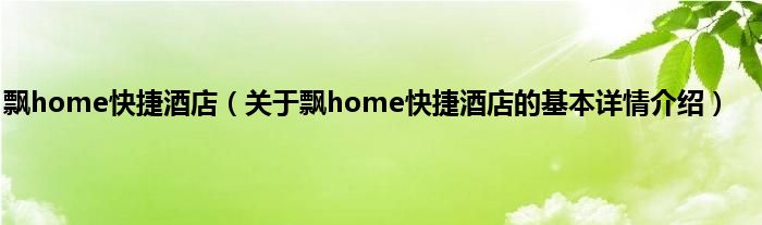 本文关于飘home快捷酒店的基本详情介绍就讲解完毕,希望对大家有所帮助。