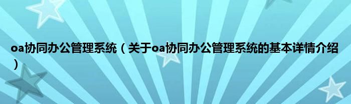 本文关于oa协同办公管理系统的基本详情介绍就讲解完毕,希望对大家有所帮助。