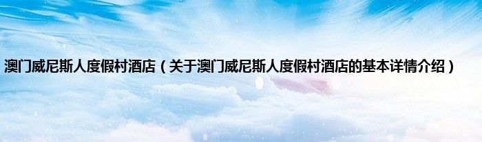 本文关于澳门威尼斯人度假村酒店的基本详情介绍就讲解完毕,希望对大家有所帮助。