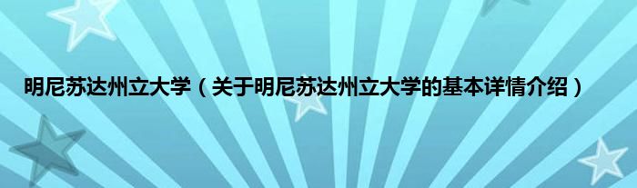 本文关于明尼苏达州立大学的基本详情介绍就讲解完毕,希望对大家有所帮助。