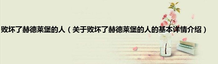 大家好我是小蝌蚪,败坏了赫德莱堡的人,关于败坏了赫德莱堡的人的基本详情介绍很多人还不知道,那么现在让我们一起来看看吧!