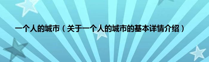 本文关于一个人的城市的基本详情介绍就讲解完毕,希望对大家有所帮助。