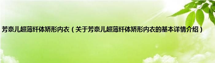 本文关于芳奈儿超薄纤体矫形内衣的基本详情介绍就讲解完毕,希望对大家有所帮助。