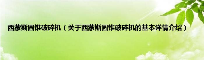 本文关于西蒙斯圆锥破碎机的基本详情介绍就讲解完毕,希望对大家有所帮助。