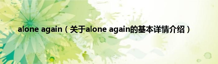 本文关于alone again的基本详情介绍就讲解完毕,希望对大家有所帮助。