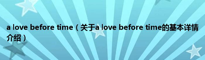 本文关于a love before time的基本详情介绍就讲解完毕,希望对大家有所帮助。