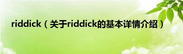 本文关于riddick的基本详情介绍就讲解完毕,希望对大家有所帮助。