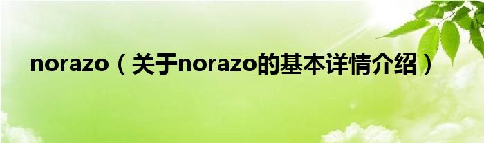 本文关于norazo的基本详情介绍就讲解完毕,希望对大家有所帮助。