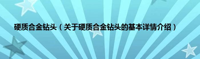 本文关于硬质合金钻头的基本详情介绍就讲解完毕,希望对大家有所帮助。