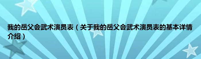 本文关于我的岳父会武术演员表的基本详情介绍就讲解完毕,希望对大家有所帮助。