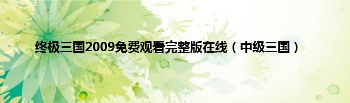 以上就是【终极三国2009免费观看完整版在线,中级三国】相关内容。