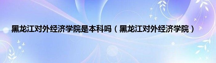 以上就是【黑龙江对外经济学院是本科吗,黑龙江对外经济学院】相关内容。