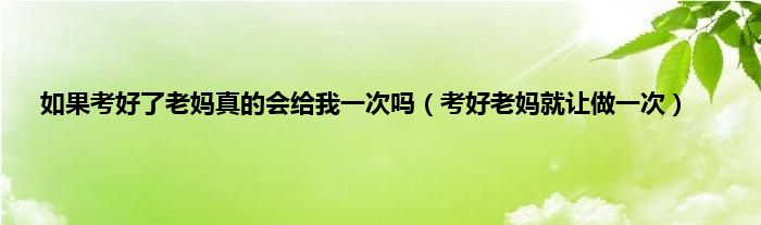 大家好,小问来为大家解答以上问题。如果考好了老妈真的会给我一次吗,考好老妈就让做一次这个很多人还不知道,现在让我们一起来看看吧!