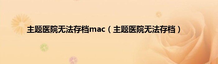 大家好,小问来为大家解答以上问题。主题医院无法存档mac,主题医院无法存档这个很多人还不知道,现在让我们一起来看看吧!