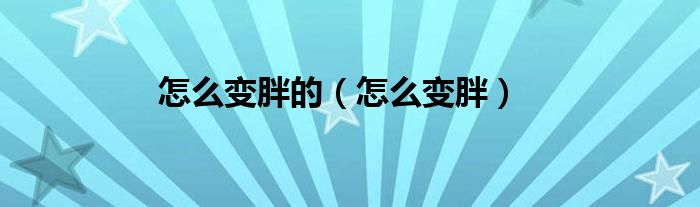 大家好,小问来为大家解答以上问题。怎么变胖的,怎么变胖这个很多人还不知道,现在让我们一起来看看吧!