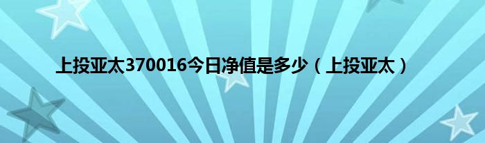 上投亚太370016今日净值是多少(上投亚太)