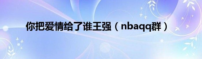 大家好,小问来为大家解答以上问题。你把爱情给了谁王强,nbaqq群这个很多人还不知道,现在让我们一起来看看吧!