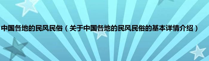 本文关于中国各地的民风民俗的基本详情介绍就讲解完毕,希望对大家有所帮助。