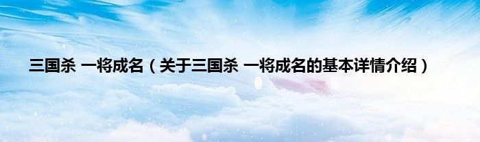 本文关于三国杀 一将成名的基本详情介绍就讲解完毕,希望对大家有所帮助。