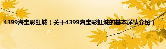 4399海宝彩虹城(关于4399海宝彩虹城的基本详情介绍)