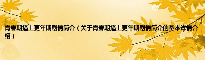 本文关于青春期撞上更年期剧情简介的基本详情介绍就讲解完毕,希望对大家有所帮助。