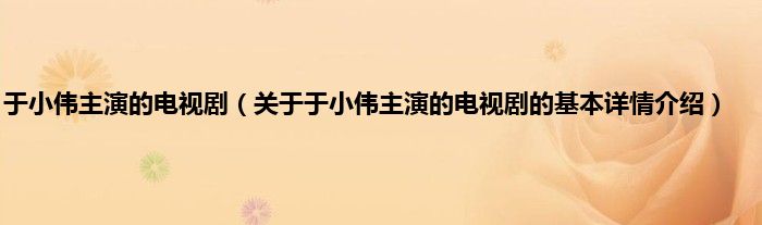 本文关于于小伟主演的电视剧的基本详情介绍就讲解完毕,希望对大家有所帮助。