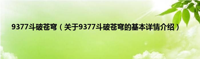 本文关于9377斗破苍穹的基本详情介绍就讲解完毕,希望对大家有所帮助。