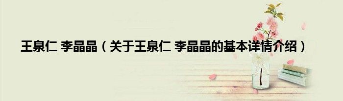 本文关于王泉仁 李晶晶的基本详情介绍就讲解完毕,希望对大家有所帮助。