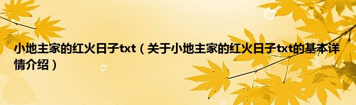 本文关于小地主家的红火日子txt的基本详情介绍就讲解完毕,希望对大家有所帮助。