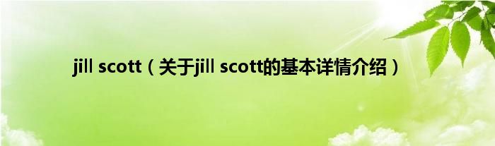 本文关于jill scott的基本详情介绍就讲解完毕,希望对大家有所帮助。