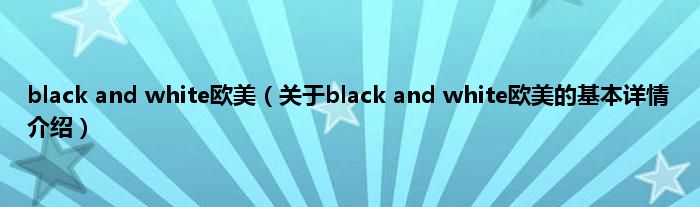 本文关于black and white欧美的基本详情介绍就讲解完毕,希望对大家有所帮助。