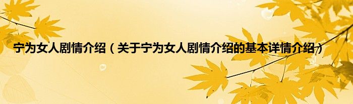 本文关于宁为女人剧情介绍的基本详情介绍就讲解完毕,希望对大家有所帮助。
