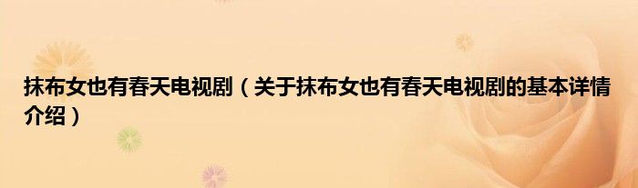 本文关于抹布女也有春天电视剧的基本详情介绍就讲解完毕,希望对大家有所帮助。