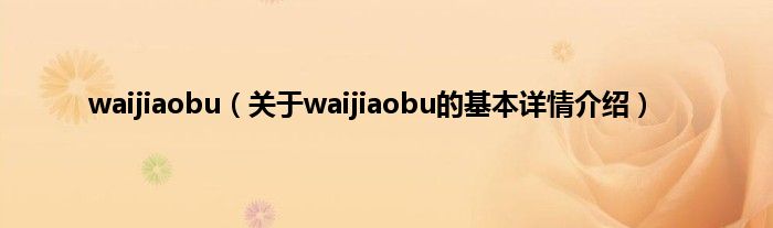 本文关于waijiaobu的基本详情介绍就讲解完毕,希望对大家有所帮助。