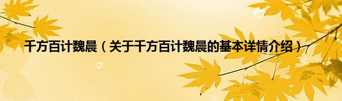 本文关于千方百计魏晨的基本详情介绍就讲解完毕,希望对大家有所帮助。