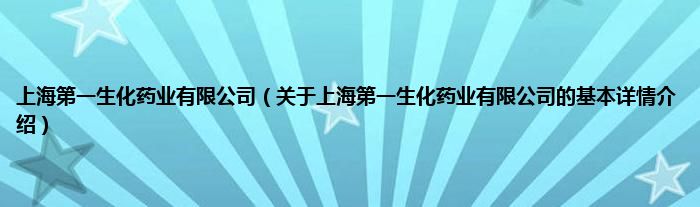 本文关于上海第一生化药业有限公司的基本详情介绍就讲解完毕,希望对大家有所帮助。