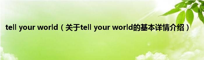 本文关于tell your world的基本详情介绍就讲解完毕,希望对大家有所帮助。