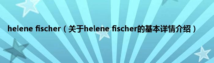 本文关于helene fischer的基本详情介绍就讲解完毕,希望对大家有所帮助。