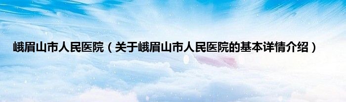 本文关于峨眉山市人民医院的基本详情介绍就讲解完毕,希望对大家有所帮助。