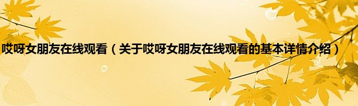 本文关于哎呀女朋友在线观看的基本详情介绍就讲解完毕,希望对大家有所帮助。