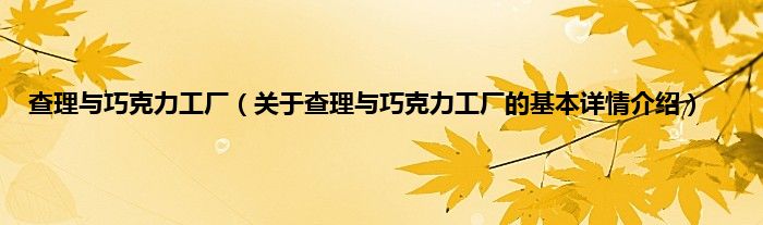 本文关于查理与巧克力工厂的基本详情介绍就讲解完毕,希望对大家有所帮助。