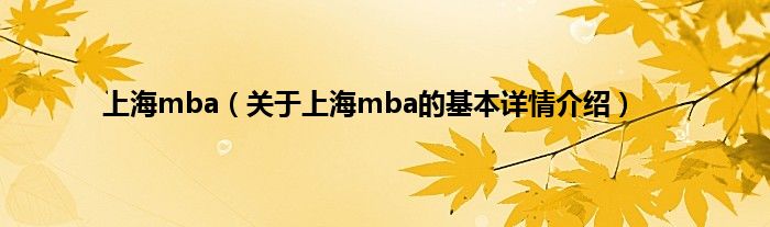 本文关于上海mba的基本详情介绍就讲解完毕,希望对大家有所帮助。